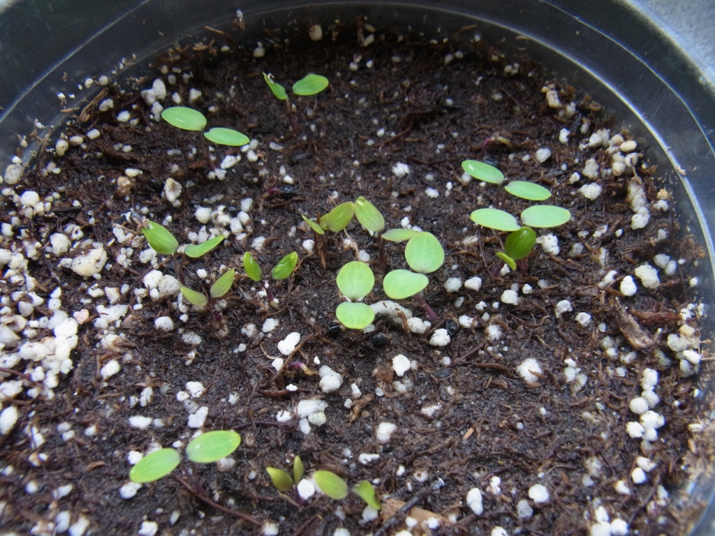 蛙の合唱を聞きながら、ベランダで植物の様子を久しぶりにチェックしたら、以前、ブログを通してお知り合いになれた、ペッパママさんからお分け頂いた種のいくつかが、遂に発芽していました!!!