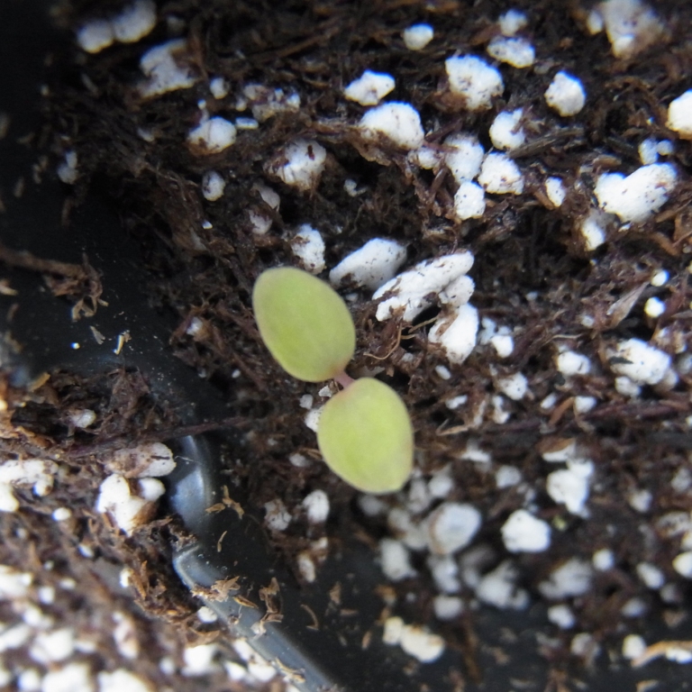 ←こちらは苧環ブラックバロー。この種が一番発芽していて、シードスターターに播いたものもいくつか発芽しています。