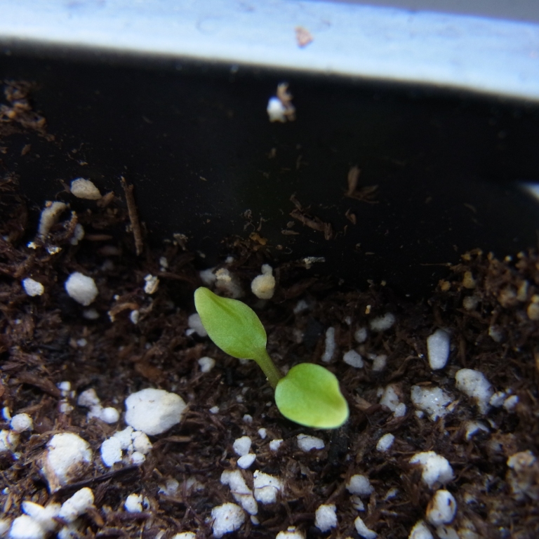 頂いた種は、苧環(おだまき)とクレマチス。2月に播いたので、もしかすると、寒冷期間が足りなくて、今年の発芽はちょっと難しいかも、と教えて頂いていたのですが、ここにきて、3種類だけですが、発芽を見ることができ、とっても感動しました。