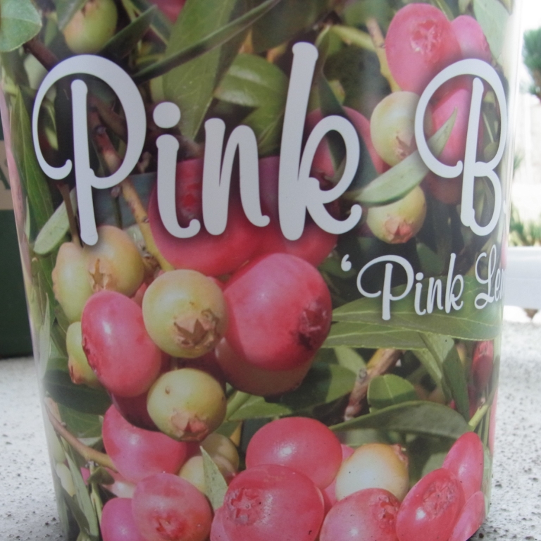 ピンクレモネードプルーベリー、なんだかスムージーか何かの名前みたいですが、名前のとおり、ピンクレモネードのような色の実をつけるブルーベリーなんです。普通のブルーベリーよりも甘いそうです。
