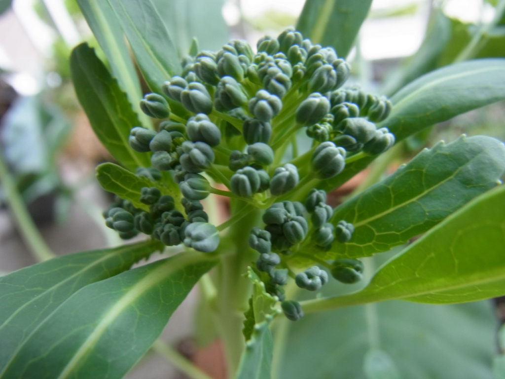 7月に播いたブロッコリーは、茎と葉だけぐんぐん伸びていたのが、ここにきてようやくクラウンをつけ始めましたが、収穫する前に寒くてダメになっちゃうかも・・・。もう少ししたら、小さくても収穫しようかなと思ってます。