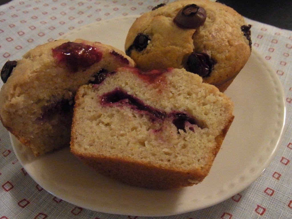 毎日、少ししか収穫できなかったので、生で食べていたのですが、ここ1~2週間くらい、収穫量が増えたので、マフィンを作りました。とはいえ、やっぱりそんなに量はないので、ブルーベリー・バナナ・ヨーグルトマフィンに。