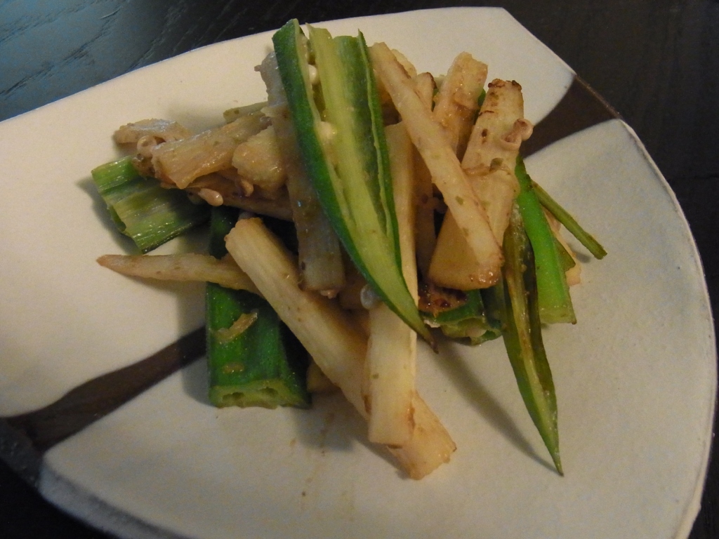 でも、大分の青柚子胡椒をもらったので、うーらさんのレシピ本で気に入っている、長芋とオクラのゆず胡椒キンピラを作りました♪
