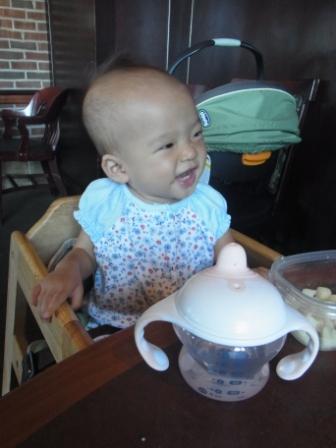 写真は、いつぞや、外食したときに、Edと仲良くお喋り(?)していた娘の様子です。