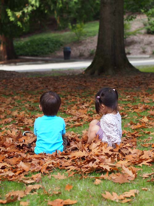 すっかり地面が枯葉で覆われていて、子供達は、葉っぱのお風呂!葉っぱのシャワー!葉っぱのお布団!などと言って、大はしゃぎでした。