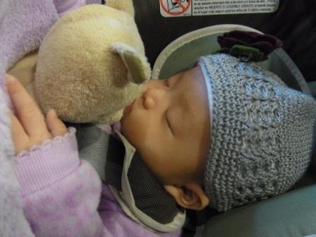 今日は、車であちこち廻ったので、カーシートの中で、最近お気に入りのプーさんを握ったまま、ぐっすりでした。