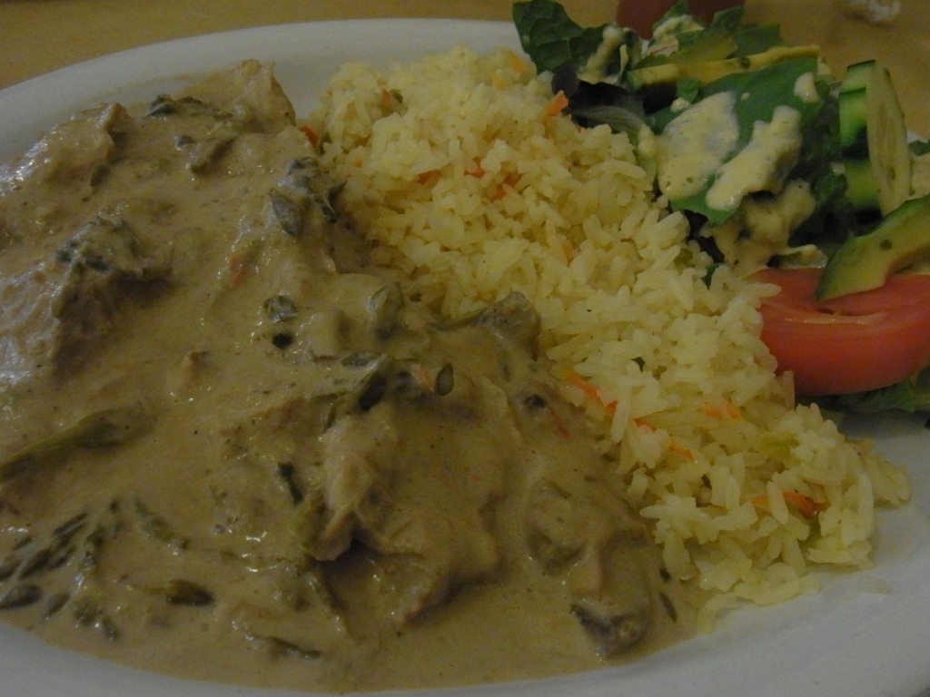 私は、チキンとロロコのクリーム煮を頼みました。これは、凄く好みー!!ロロコも可愛い響きじゃないですか?エルサルバドルで採れるお花だそうです!