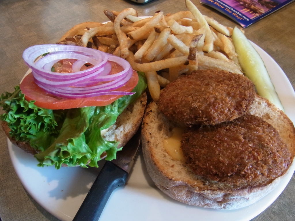 Edは、最近、揚げものに飢えていたのか(私は家では揚げものを滅多につくりません・・・)、フライドポテトがてんこ盛りのCrab Cake Sandwhich($15)を頼みました。