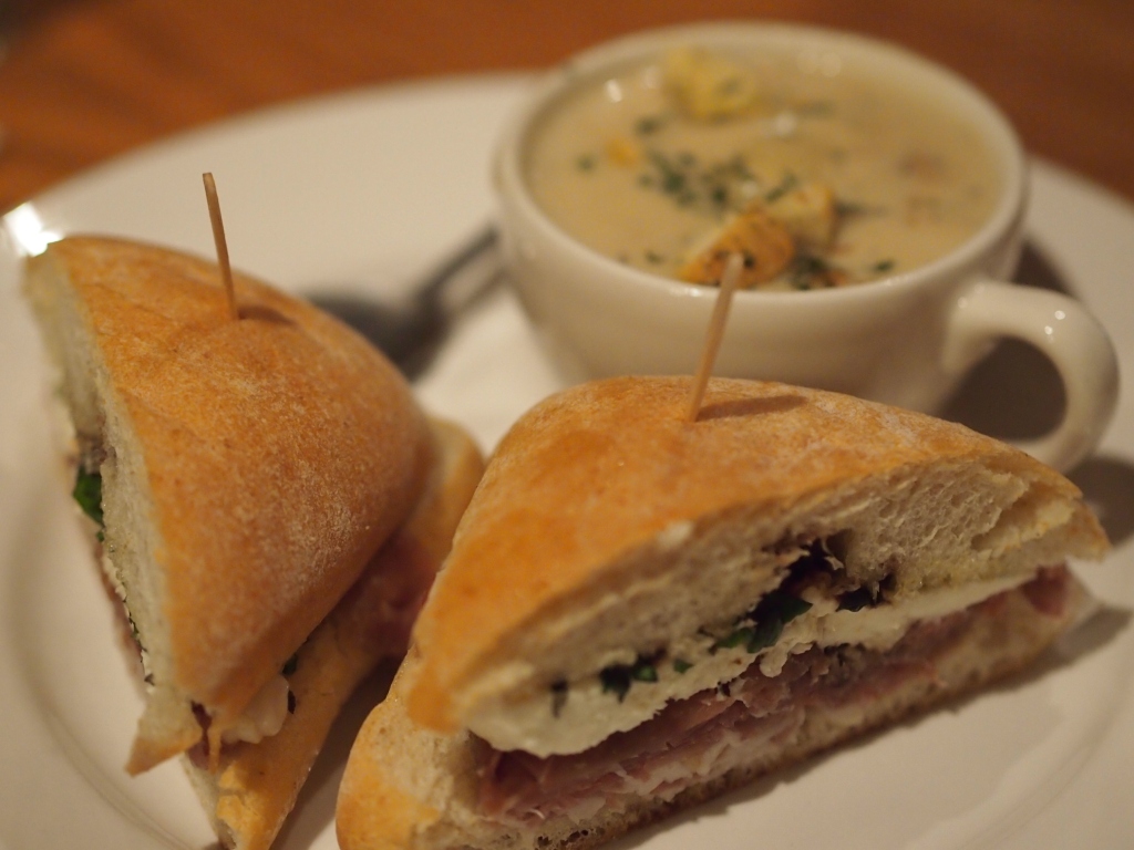 腹ペコだった私は、サンドウィッチは意外と小さい?とアメリカに慣れてしまったかのような思いを抱いてしまいましたが、食べ終わったら、ズッシリときて、お腹がパンパンになってしまいました。