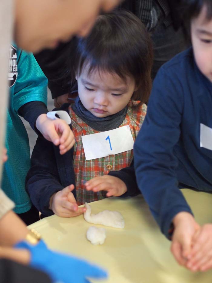 子供達も、専用のテーブルで、丸める作業を体験させてもらいました。