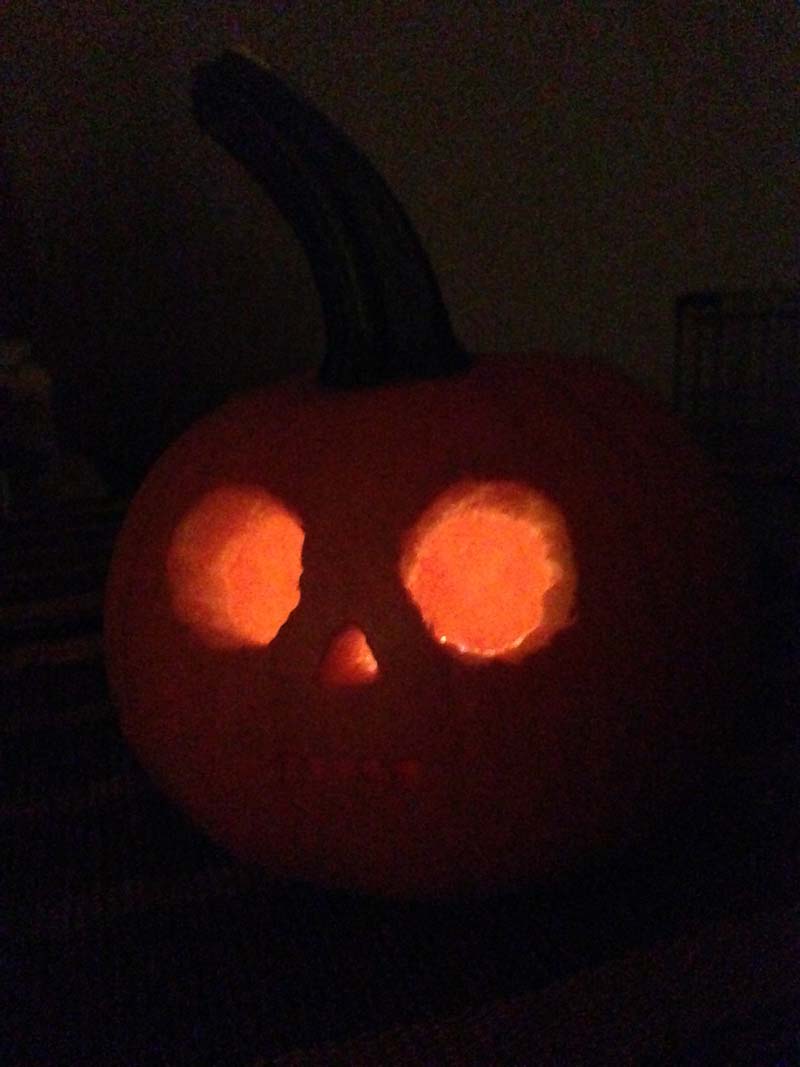 そうそう、我が家のカボチャのバケですが、今年は、仕事が忙しかったEd、やる気がなく、小さいカボチャをサササッと彫っただけ・・・。