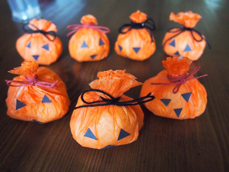 子供達は、目と口を糊でくっつけただけで、あとは母親が作業ですが、娘は、「カボチャのバケ」と大喜びでした。