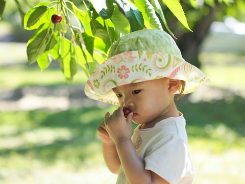 ・・・しかし、チェリー摘みは、子連れには向かないことがわかりました。