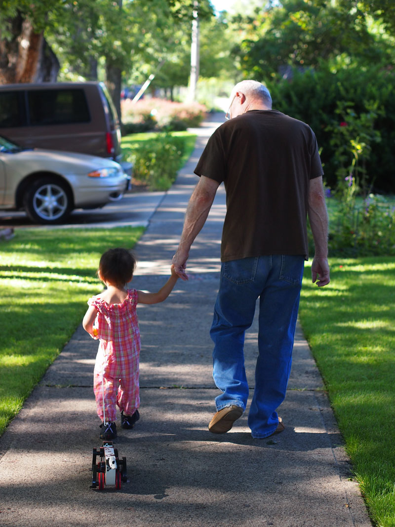朝は、義父と、犬のドルーピー(オモチャ)を連れてお散歩。KOKOのリーシュは持たせてもらえないので、滞在中、常にドルーピーを従えて歩いてました。