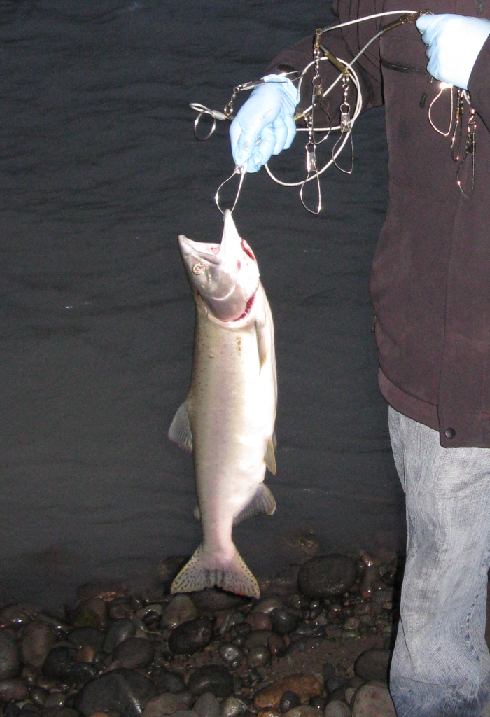 翌日の日曜日、私は行きませんでしたが、Edが、今度は60cmのピンクサーモン(♀)を釣ってきました。メスのピンクにしては、かなり大きい!