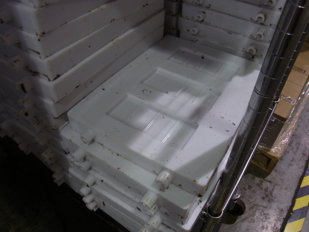 左の写真は、最後に、チョコレートをバーの形に成形するエリアです。
