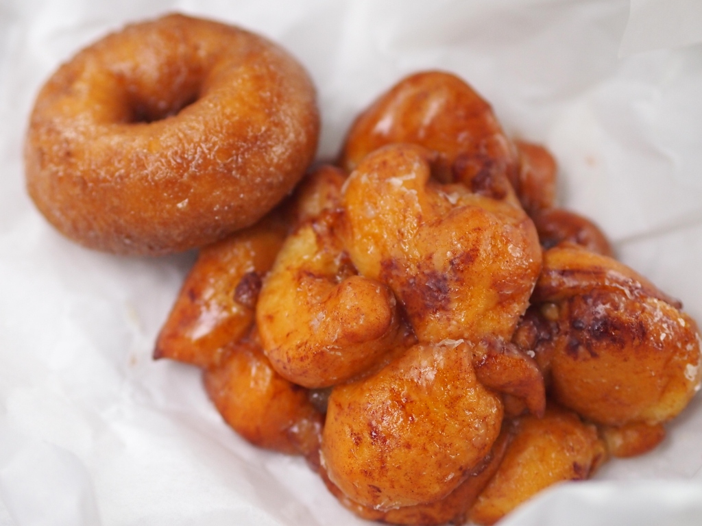 農場でのお楽しみ、アップルサイダードーナツと、アップルフリッター。どちらも揚げたてで、甘さ控えめで、かなり美味しかった。アップルサイダードーナツは、ふんわりしたケーキドーナツなのですが、今まで食べた中で、一番美味しいケーキドーナツだったかも!