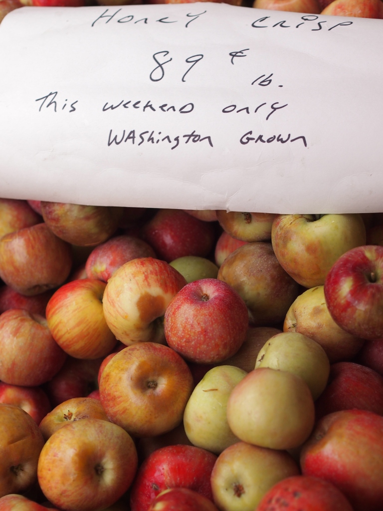 虫食いだったり、傷んだりしてるリンゴもごちゃ混ぜですが(笑)、私の好きなハニークリスプ含め、全てのリンゴが、89¢/lbと、かなり格安!