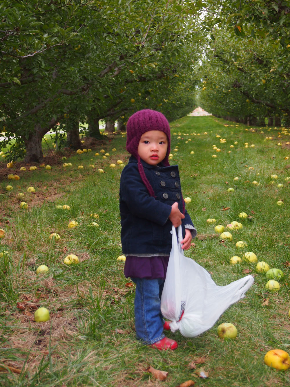 でも、自分も袋が欲しいと主張し、「ニンゴー!アップー!」と叫びながら、袋片手に、リンゴ農園を走り回り、手が届く場所に生っているリンゴを、一所懸命もごうとする姿は、可愛くて、思わず家族で大笑い。