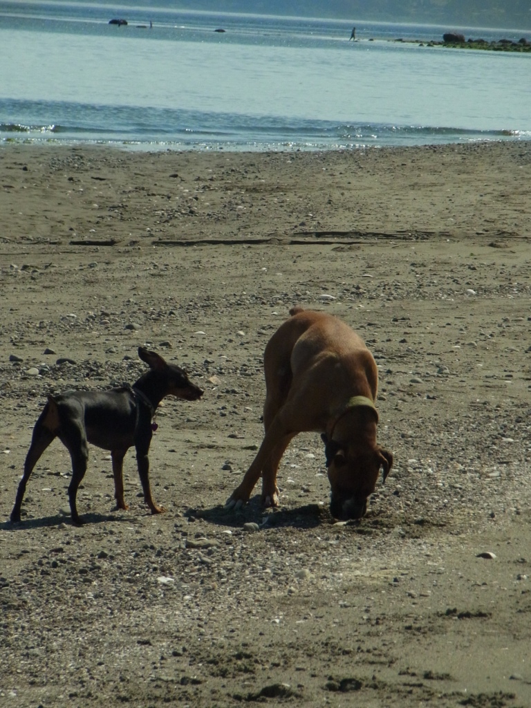 そうだ!KOKOが地面にスライディングしてる姿を見て、もしや・・・と思ったら、打ち上げられてた魚の死体に、体をなすりつけようとしてました!