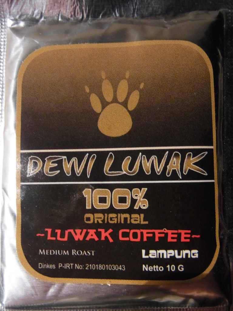 ルワクコーヒーを一部だけ使ったブレンドもあるようですが、これは、100%です。お値段は、43,000ルピアとのこと。インドネシアのインフレは凄いですね・・・日本円換算で400円くらいだそうです。しかし、これは、コーヒーカップ約2杯分なので、インドネシアの物価(お給料は日本の半分←間違えました、10分の1くらいだそうです)を考えると、確かに超高級品。