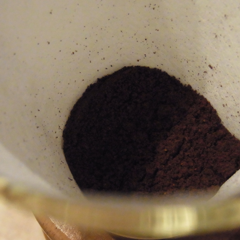 コーヒーの粉は、細かいです。香りは・・・チョコレートのような香り。
