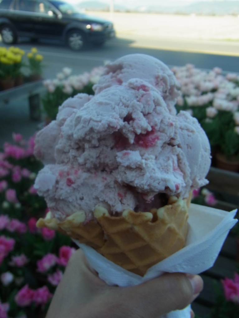 で、これが、問題のアイスクリームです。48種類(!)の中から、カントリーラズベリーを選びました。