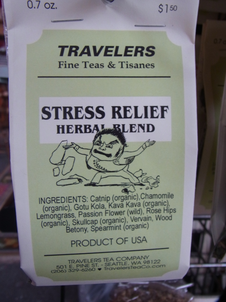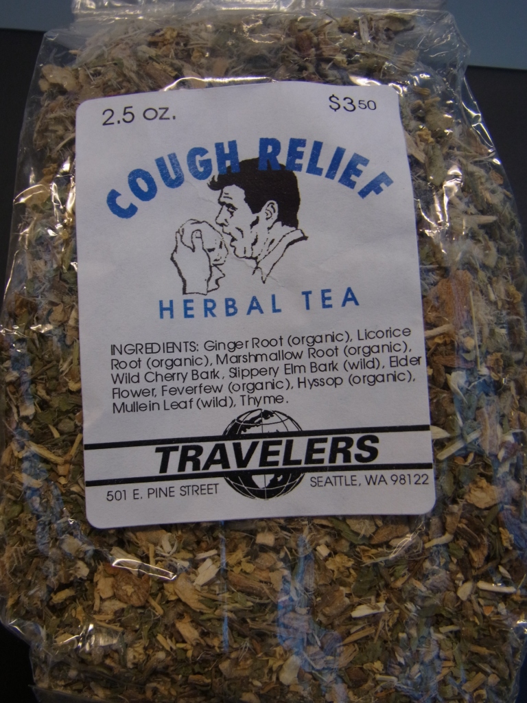 チャイナタウンへ漢方薬を見に行くつもりだったので、喉にいい漢方薬でも探そうかなと思っていたのですが、昨日、キャピトルヒルからダウンタウンに向かって散歩している途中に、Cough Relief(咳の軽減という意味)というハーブティを発見しました!
