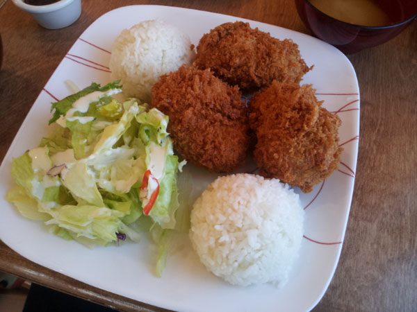 手の大きい私のゲンコツ程もある、コロッケ(メニュー上は、Potato Katsu)。ひき肉、玉ねぎ、人参入りで、手作り感たっぷりでした。