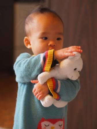 さて、我が娘。最後の方に、突如、熊のぬいぐるみを胸に抱えて、歩き始めました。いつも家でやるようにブンブン振り回すんじゃなかろうか?と冷や冷やしていたら、何と、熊の頭をなでながら、歩いてて、ビックリ。こんな仕草、今までしたことがありません。