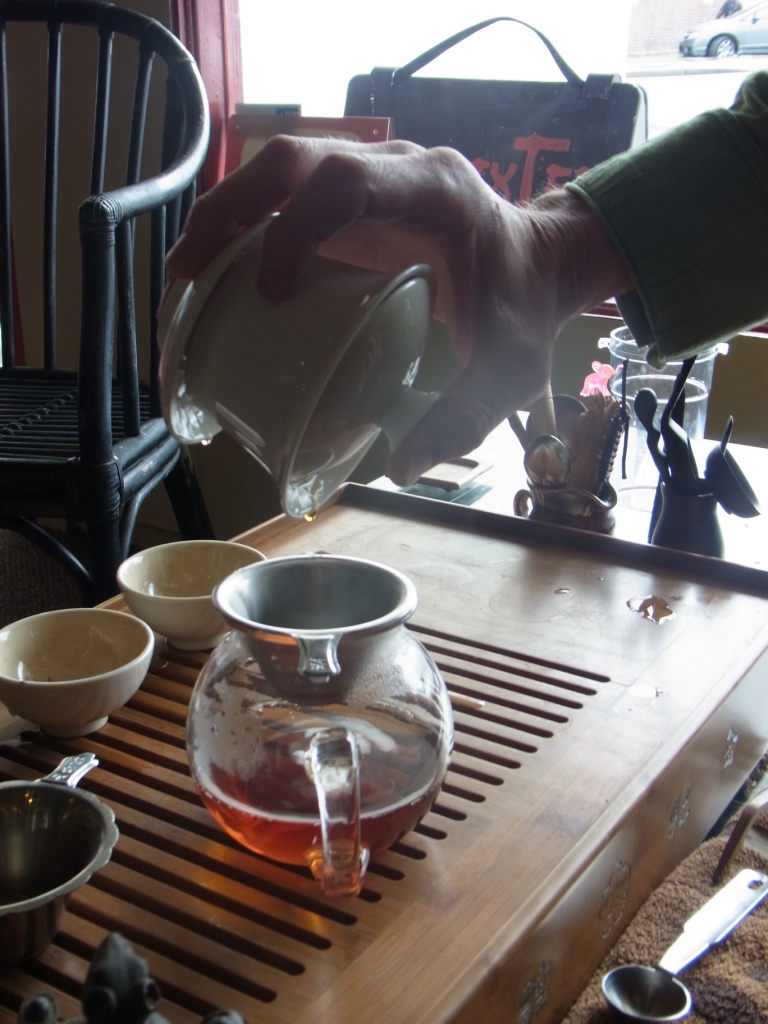 他にお客さんもいなかったので、2人(+娘)で、ゆったりとお茶を味わって、ポツポツとお茶についてお喋りをする、という、楽しい時間を過ごせました。ブレットさんは台湾にしか行ったことがないそうですが、お茶についての知識はとても深いので、お勧めです♪