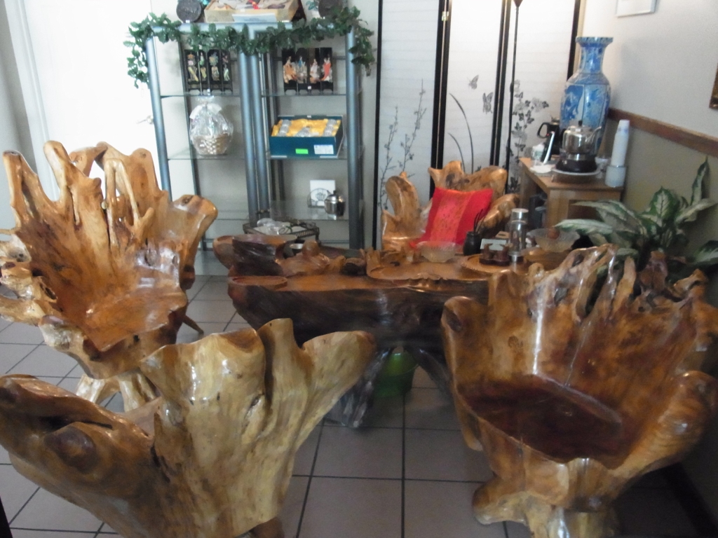 写真は、テイスティングコーナー。椅子が中国っぽいですね。