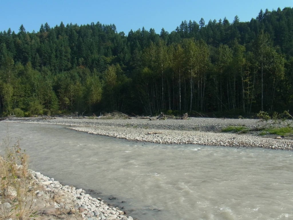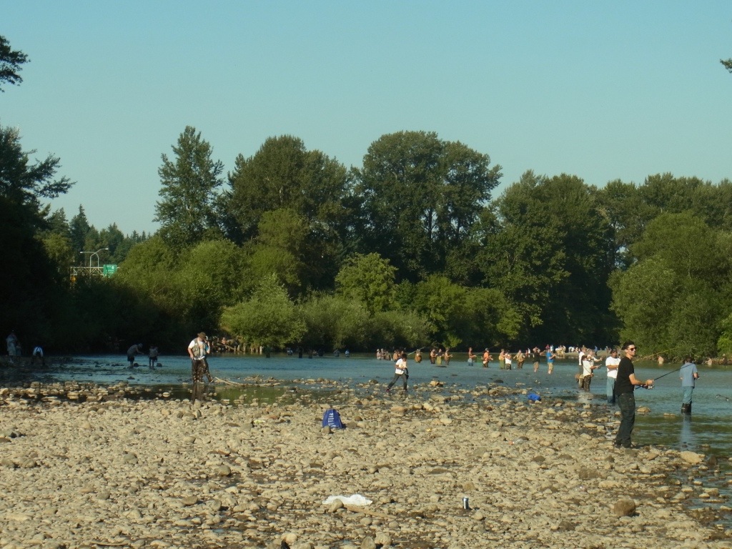 最初、ピュアラップ川の下流へ向かいました。6時台でも既に多くの人が釣っていましたが、昼間よりも場所は簡単に見つかりました。