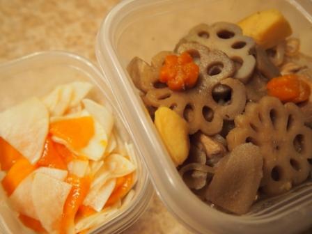 ちょっとはお正月っぽいものを作ろうか、と思って、パーティに呼んでくれたお友達に、煮物となますを作って持って行きました。