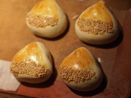 膨らむことを考慮して、つや出しとごまの配置を考えればよかったな・・・。でも、初めてにしては上出来ということにしておきます。