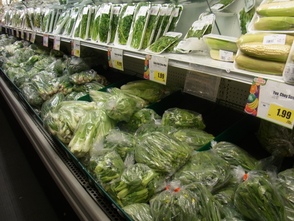さすが、中国系スーパーです。冬だというのに、青物の種類は、今まで見たスーパーマーケットの中でも一番多かったように思います。知らない野菜も多くて、試してみたいと思いました。銀杏もあって、茶碗蒸しがつくりたくなりました。