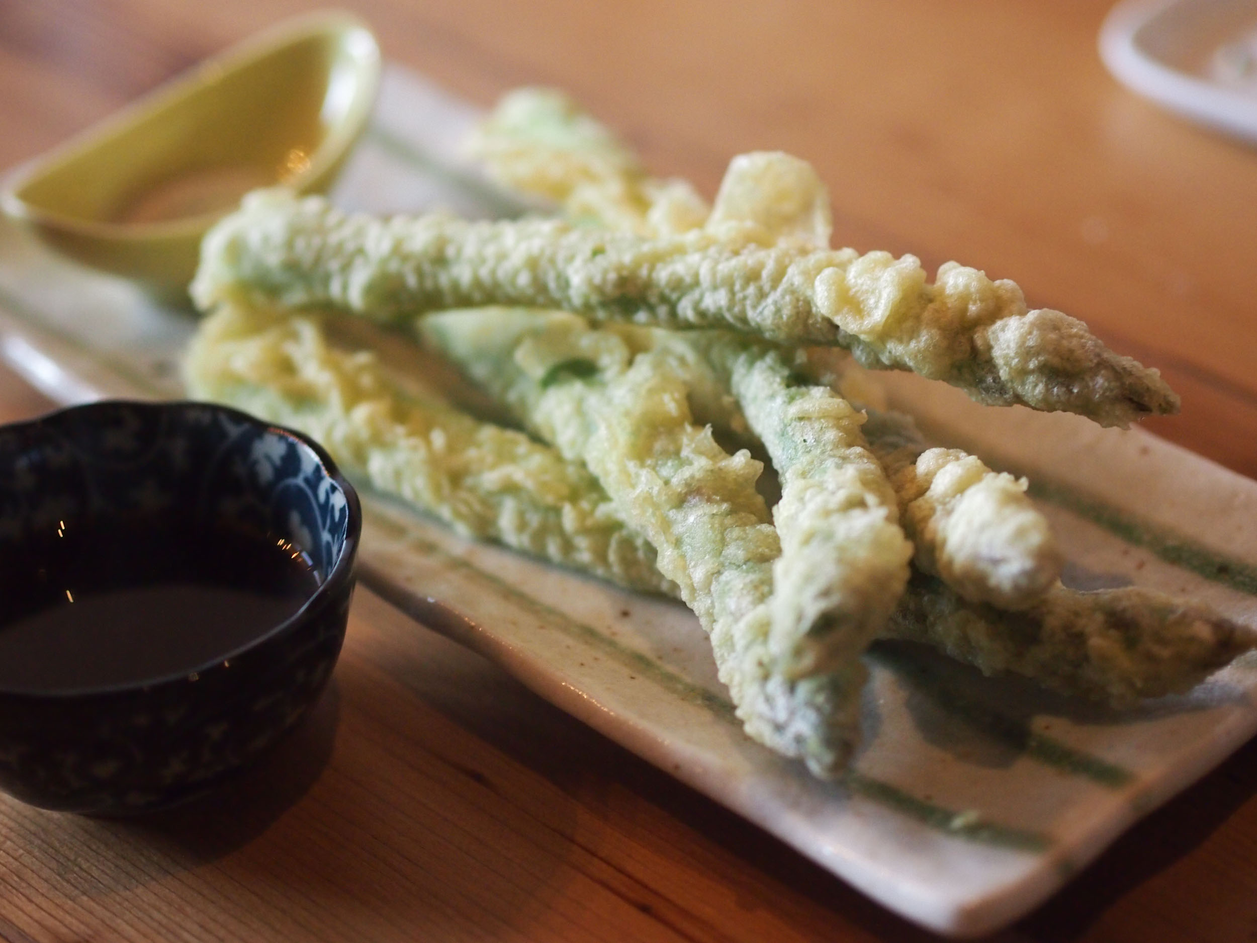 それから、旬のアスパラの天麩羅。凄くぶっといアスパラでした。トリュフ塩で頂きました。