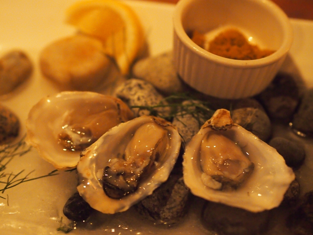 私は、絶対にオイスターを食べたかったので、オイスター。これも、ハッピーアワー価格。キムチアイス(本当にキムチ味の氷)で頂きます。美味しい~♪