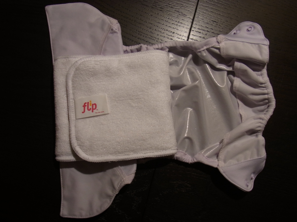 布のインサートだけでなく、使い捨てのインサートも使えるので、布おむつと紙おむつの中間という側面もあり、旅行などでも気軽に使えます。代表的なのは、GroViaとFlip。(写真は、Flip)