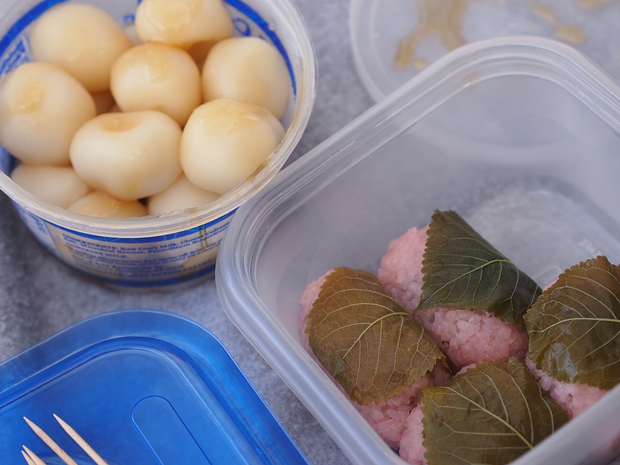 1回目は、友人宅で、桜餅を一緒に作って、それを持ってお花見しました。