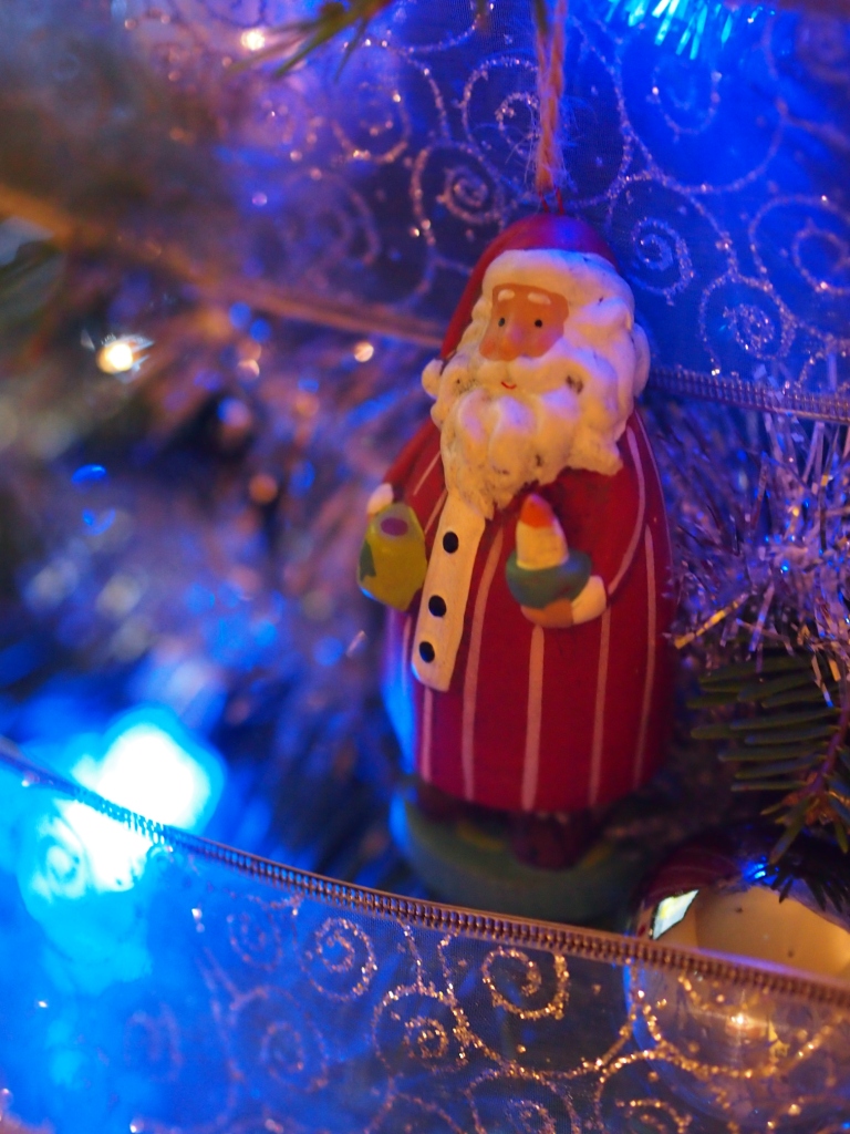 このサンタさんは、去年のオーナメント。レベンワースというドイツ村に行った時に買ったもの。