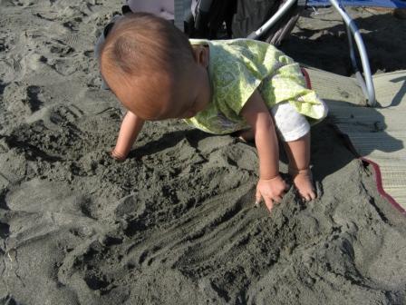 今まで、ビーチに行くたびに、砂の感触を嫌がっていたのですが、この時は、なぜか、興味を示し、あっという間に砂まみれになって遊んでいました~。