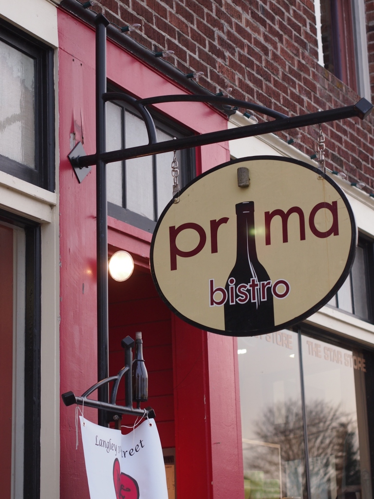 Prima Bistroに行こうと誘ってくれました。5時前に行きましたが、もう30分待ちでした。バレンタインの週末ですもんね・・・。今回は、ちゃんと、表玄関から入りました。