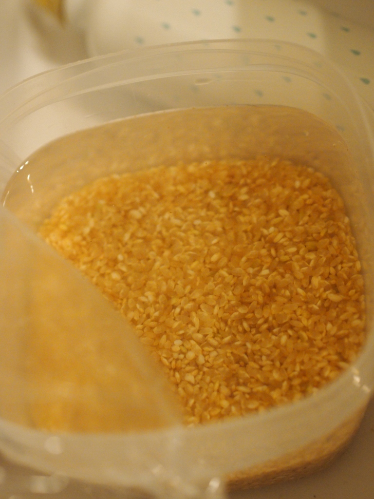 実家に帰れば、精米機がありますが、ここで一分づきの玄米なんて手に入るのかどうかも不明です。そこで、自分でもできそうだった、発芽玄米麹にチャレンジすることにして、まずは発芽玄米から作りました。