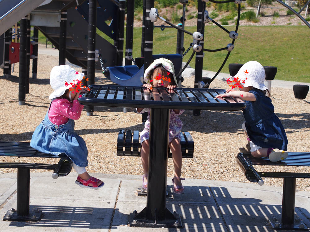 が、遊具よりも、椅子に座って、テーブルをたたくことに熱中していた女の子達。可愛いなあ。